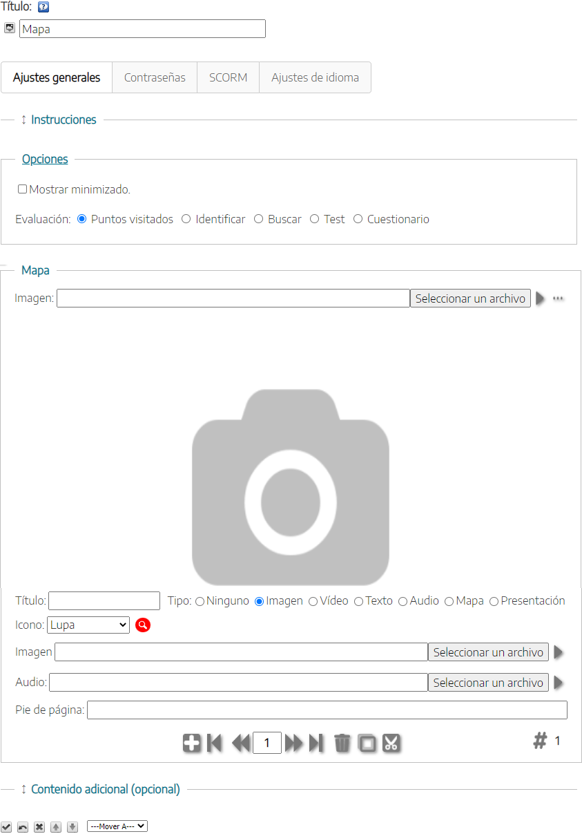 - Introducir un icono sobre dicha imagen que de como resultado una información en forma de texto, imagen, vídeo, audio, presentación u otro nuevo mapa o imagen interactiva. Añadiremos un nuevo punto en el mapa, haciendo clic en +