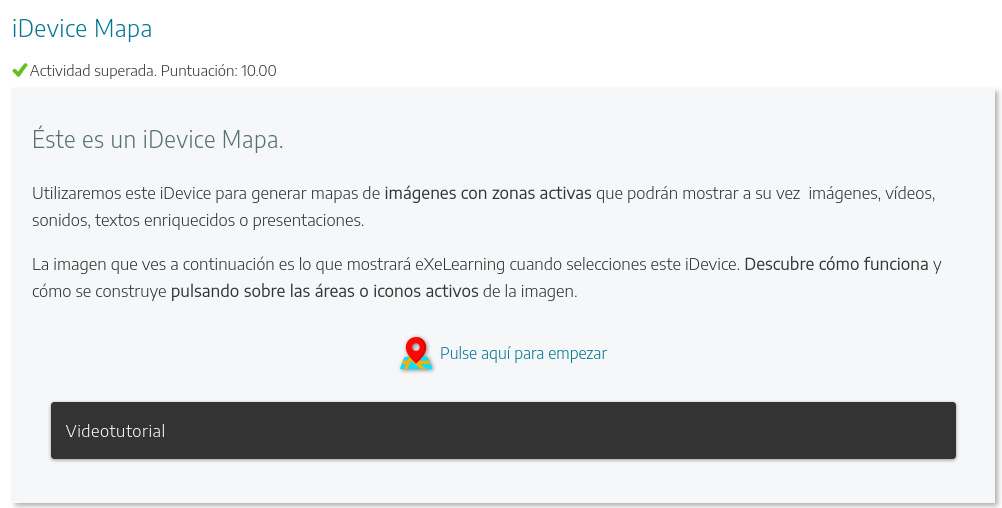 La imagen que ves a continuación es lo que mostrará eXeLearning cuando selecciones este iDevice. Descubre cómo funciona y cómo se construye pulsando sobre las áreas o iconos activos de la imagen.