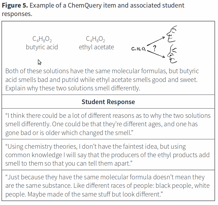Como primer ejemplo podemos observar esta actividad propuesta en un artículo de Claesgens, J., Scalise, K., y Stacy, A. (Mapping student understanding in chemistry: The perspectives of chemists, 2013, Educación Química, 24(4), 407-415. https://doi.org/10.1016/S0187-893X(13)72494-7).