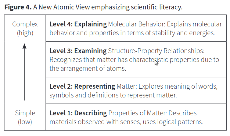 En ella se puede observar el trabajo realizado al conectar el nivel macroscópico (aspecto, olor) con el nivel submicrosópico (estructura tridimensional) y el nivel simbólico (fórmula).